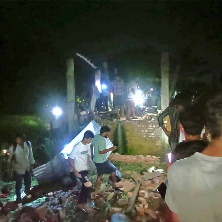 অযোধ্যার পাগলা ভারি গ্রামের ঘটনা। বৃহস্পতিবার রাতে আচমকা সেখানে বিস্ফোরণ ঘটে। তীব্র শব্দে কেঁপে ওঠে চারপাশ। কিন্তু ঠিক কী থেকে বিস্ফোরণ, তা এখনও স্পষ্ট নয়। সার্কেল অফিসার শৈলেন্দ্র সিংহ সংবাদ সংস্থা পিটিআইকে জানিয়েছেন, ধ্বংসস্তূপে অনেকে আটকে পড়েছেন। পাঁচ জনের দেহ উদ্ধার করা হয়েছে। কয়েক জন আহত, তাঁদের হাসপাতালে ভর্তি করানো হয়েছে। কী কারণে এই বিস্ফোরণ, তা জানা যায়নি।