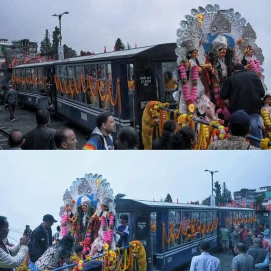 সাধারণত সমস্ত জায়গাতেই লরি, ট্রাক বা কাঁধে চাপিয়ে দেবীকে নিয়ে যাওয়া হয় নিরঞ্জনের উদ্দেশ্যে। কিন্তু এই বছর দার্জিলিংয়ের এই দুর্গাপুজো কমিটির তরফে এক অদ্ভুত ব্যবস্থা করা হয়েছিল। এই মণ্ডপের উমা সপরিবারে গাড়ি চেপে নয়, বরং টয় ট্রেনে করে ফিরে গেলেন কৈলাসে। দার্জিলিংয়ের অন্যতম আকর্ষণ টয় ট্রেনে করে প্রতিমা নিয়ে যাওয়া হয় নিরঞ্জনের জন্য।