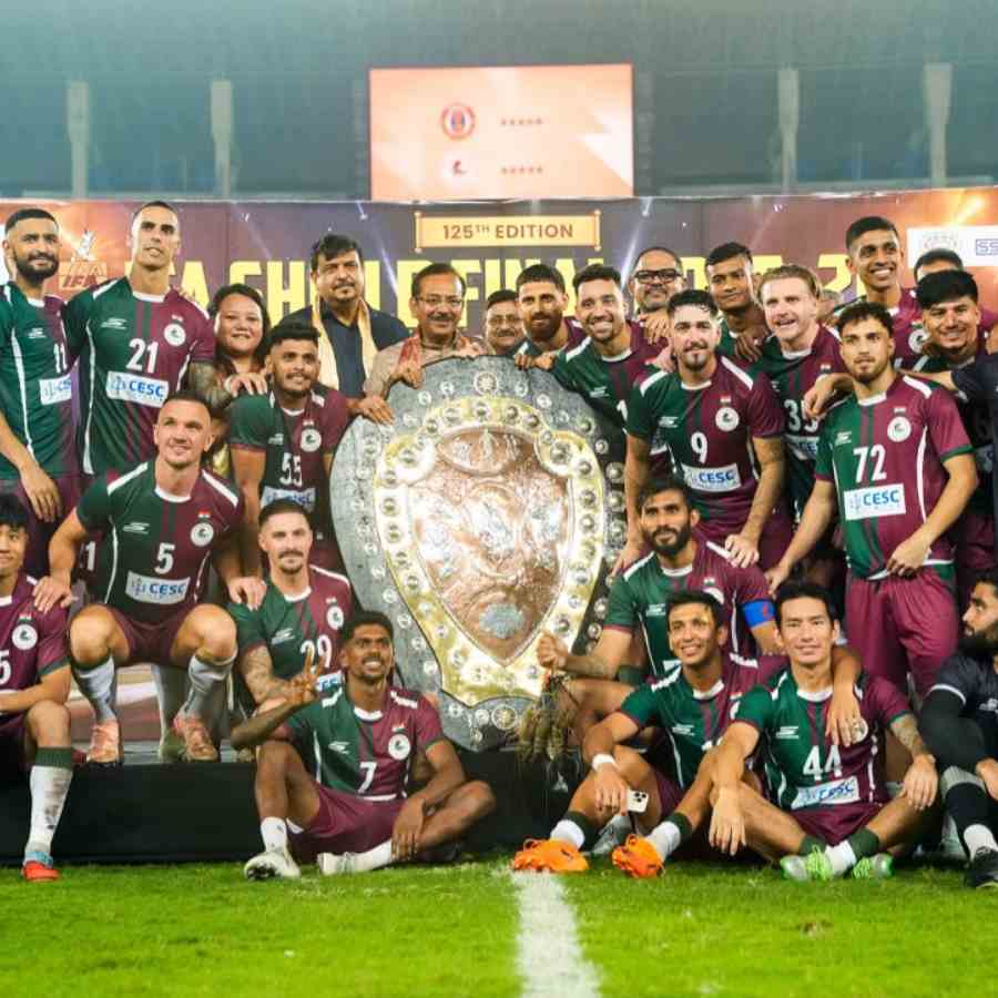 আরও একটি ফাইনাল জিতল মোহনবাগান। আরও একটি ফাইনালে ডার্বিতে ইস্টবেঙ্গলকে হারাল তারা। চলতি মরসুমের প্রথম দু’টি ডার্বি হেরেছিল মোহনবাগান। কিন্তু তৃতীয় ম্যাচ জিতে নিল তারা। যুবভারতীতে আইএফএ শিল্ডের ফাইনালে পিছিয়ে পড়েও হাল ছাড়েনি মোহনবাগান। ইস্টবেঙ্গল এই ম্যাচে দুর্দান্ত লড়াই করেছে। বেশির ভাগ সময় দাপট দেখিয়েছে তারাই। কিন্তু কাজের কাজ করতে পারেননি লাল-হলুদ ফুটবলারেরা। গোল না করতে পারলে যে ম্যাচ জেতা যায় না তা আরও এক বার দেখা গেল। টাইব্রেকারে জিতে চলতি মরসুমে প্রথম বড় ট্রফি জিতল মোহনবাগান। ২২ বছর পর আবার আইএফএ শিল্ড জিতল বাগান।