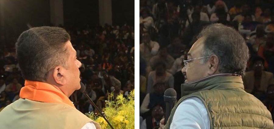 মঞ্চ বাঁধা হয়েছিল দলের মূলস্রোত থেকে হারিয়ে যাওয়া ‘আদি’ নেতাদের সক্রিয়তায় ফেরানোর লক্ষ্যে। অপেক্ষাকৃত ‘নব্য’ নেতা সেই প্রকাশ্য মঞ্চেই অভিভাবকের শাসনের সম্মুখীন হলেন। ঘটনাচক্রে ‘শাসনকারী’ এবং ‘শাসিত’ এই মুহূর্তে পশ্চিমবঙ্গ বিজেপির দুই সর্বোচ্চ নেতা। রাজ্য বিধানসভার বিরোধী দলনেতা শুভেন্দু অধিকারীকে রাজ্য বিজেপির সভাপতি শমীক ভট্টাচার্য বৃহস্পতিবার স্পষ্ট ভাষায় বললেন, ‘‘ভবিষ্যতের কোনও সভায় এই কথা আপনি বলবেন না।’’